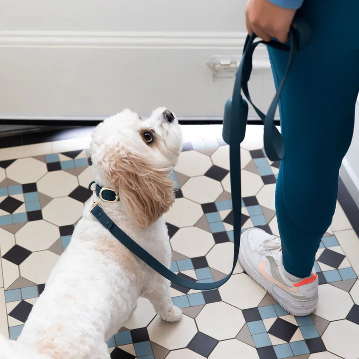 Our signature line of collars and leads are made from a premium vinyl coated webbing that has all of the pros and none of the cons—waterproof, odour and dirt resistant, vegan, easy to clean, and buttery soft